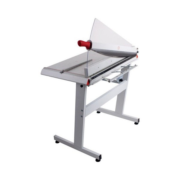 Cizallas profesionales de palanca con pistón automático para un corte preciso y cómodo. Amplia mesa de sólida construcción totalmente metálica. Cuchillas reafilables de alta calidad hechas de acero reforzado. Protección fija de la cuchilla de color transparente con indicador de lines de corte integrado para un alineamiento exacto del papel a cortar. Tope lateral de precisión y escuadra trasera ajustable.